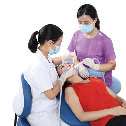 - Rękawy z systemem blokady zasysania zwrotnego zapobiegają cofaniu się wody i powietrza z końcówki do wnętrza unitu zabezpieczając przed zakażeniami krzyżowymi między pacjentami